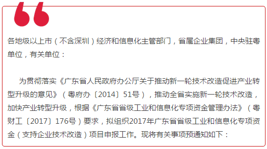 资金申报 | 2017年省级专项资金支持企业技术改造项目申报的预通知